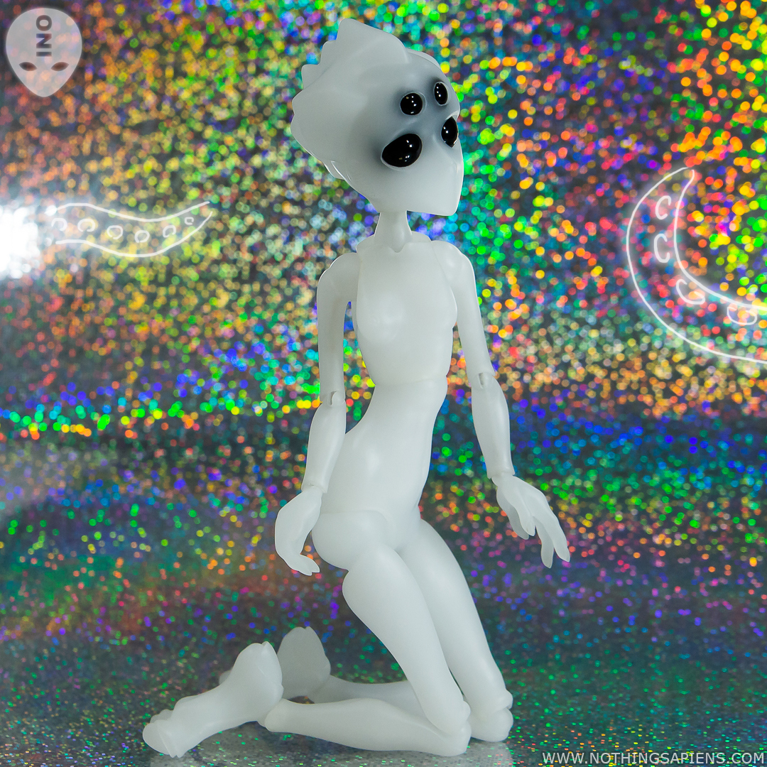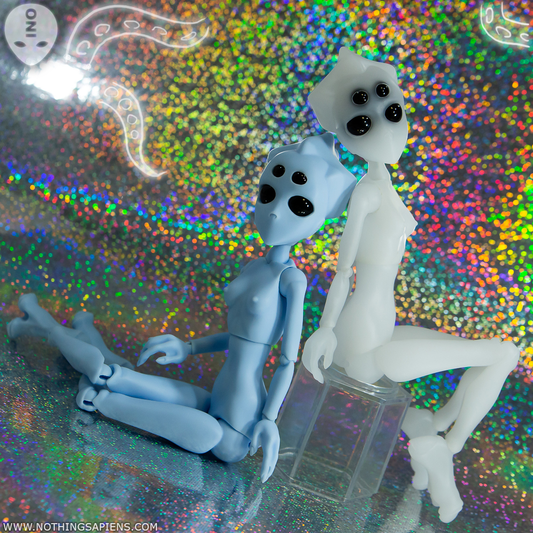 ИНО — шарнирная кукла с цельнолитой головой с влитыми несменными глазами из камня, и ростом 26 см. Мы выпустили это тело после гибкого, сделав кукол более доступными: оптимизировали производство и сократили количество двойных шарниров. Мы постарались сделать максимально возможную подвижность и фиксацию для одночастных шарниров.